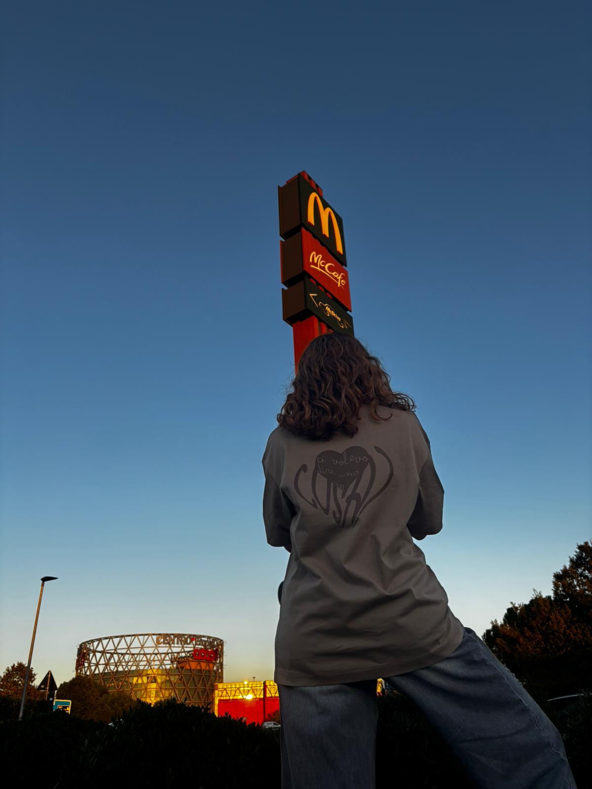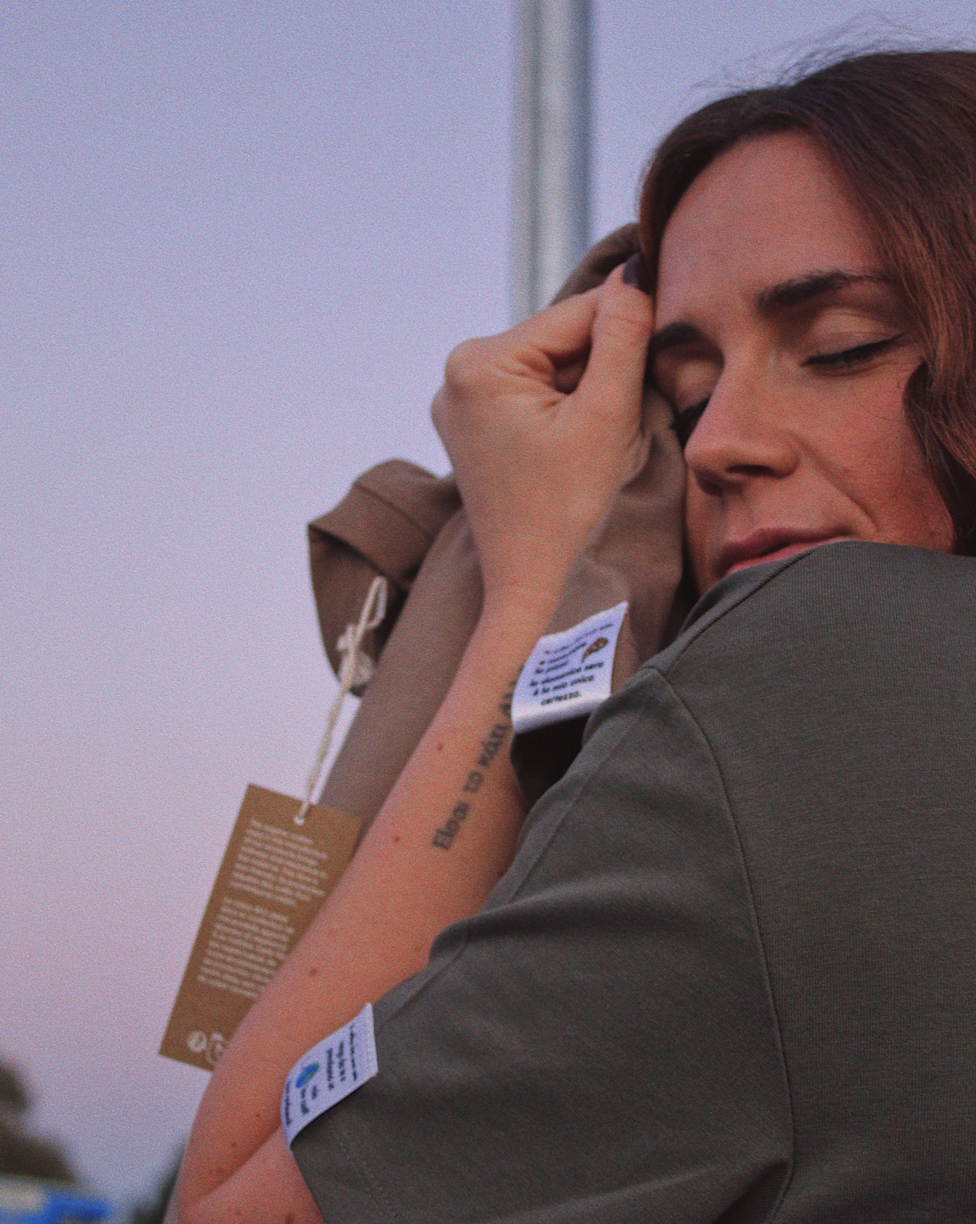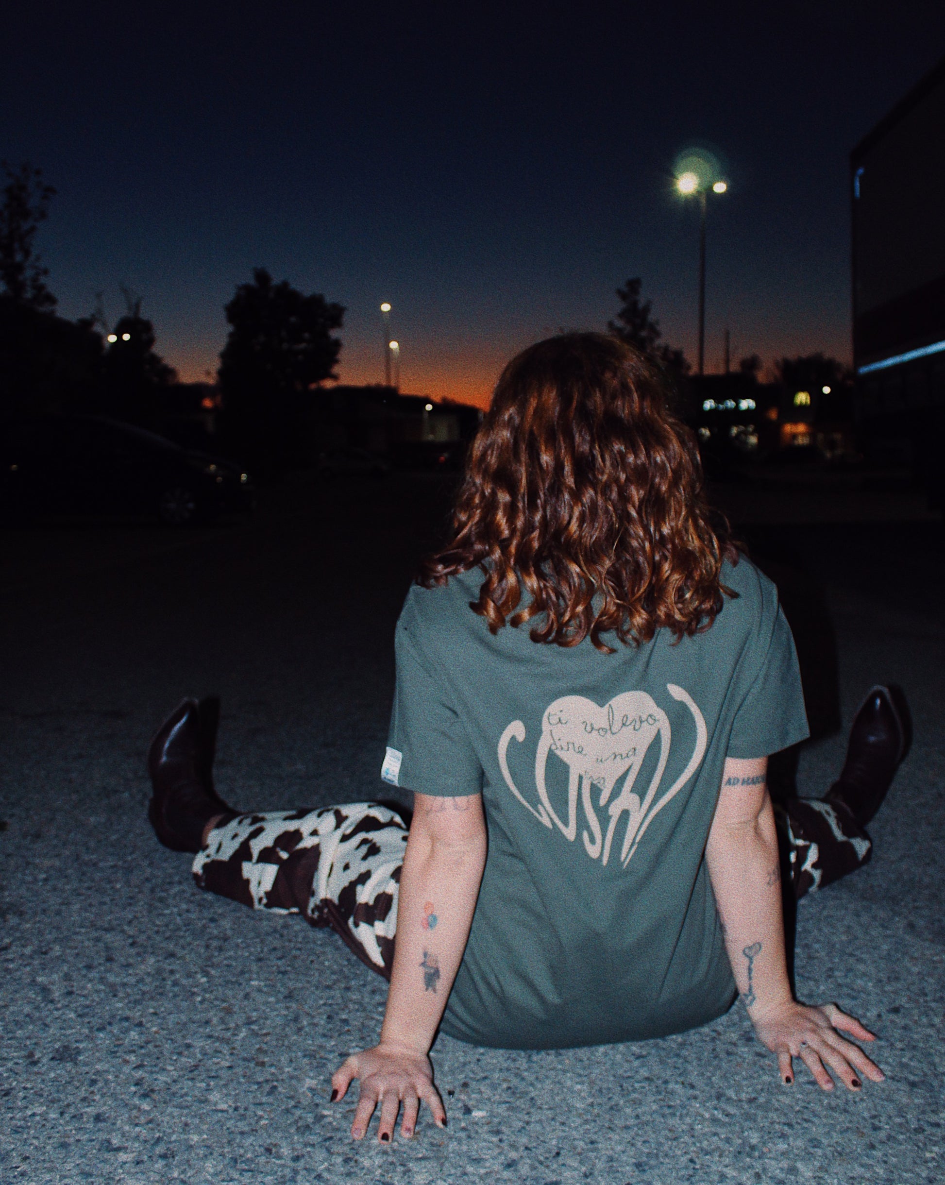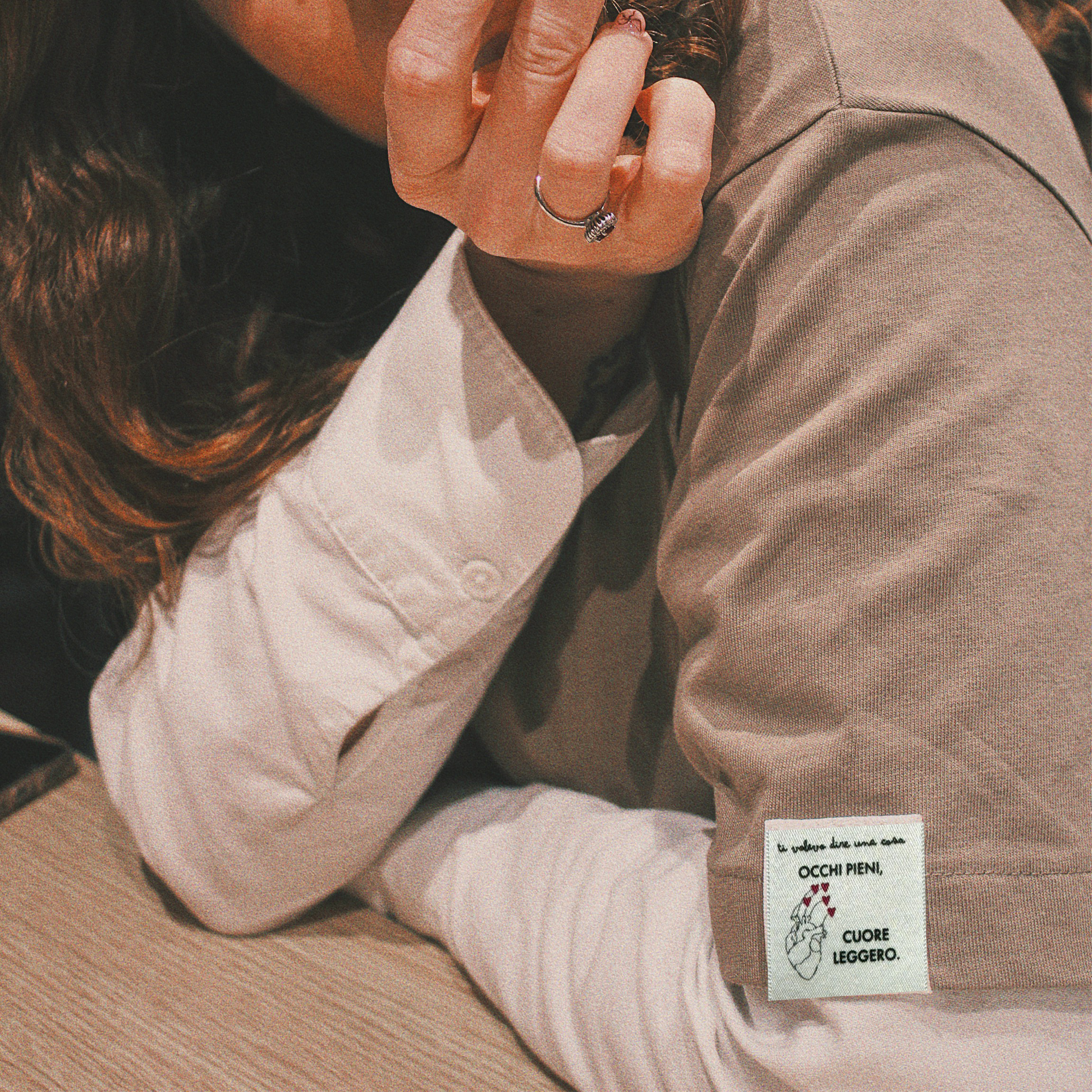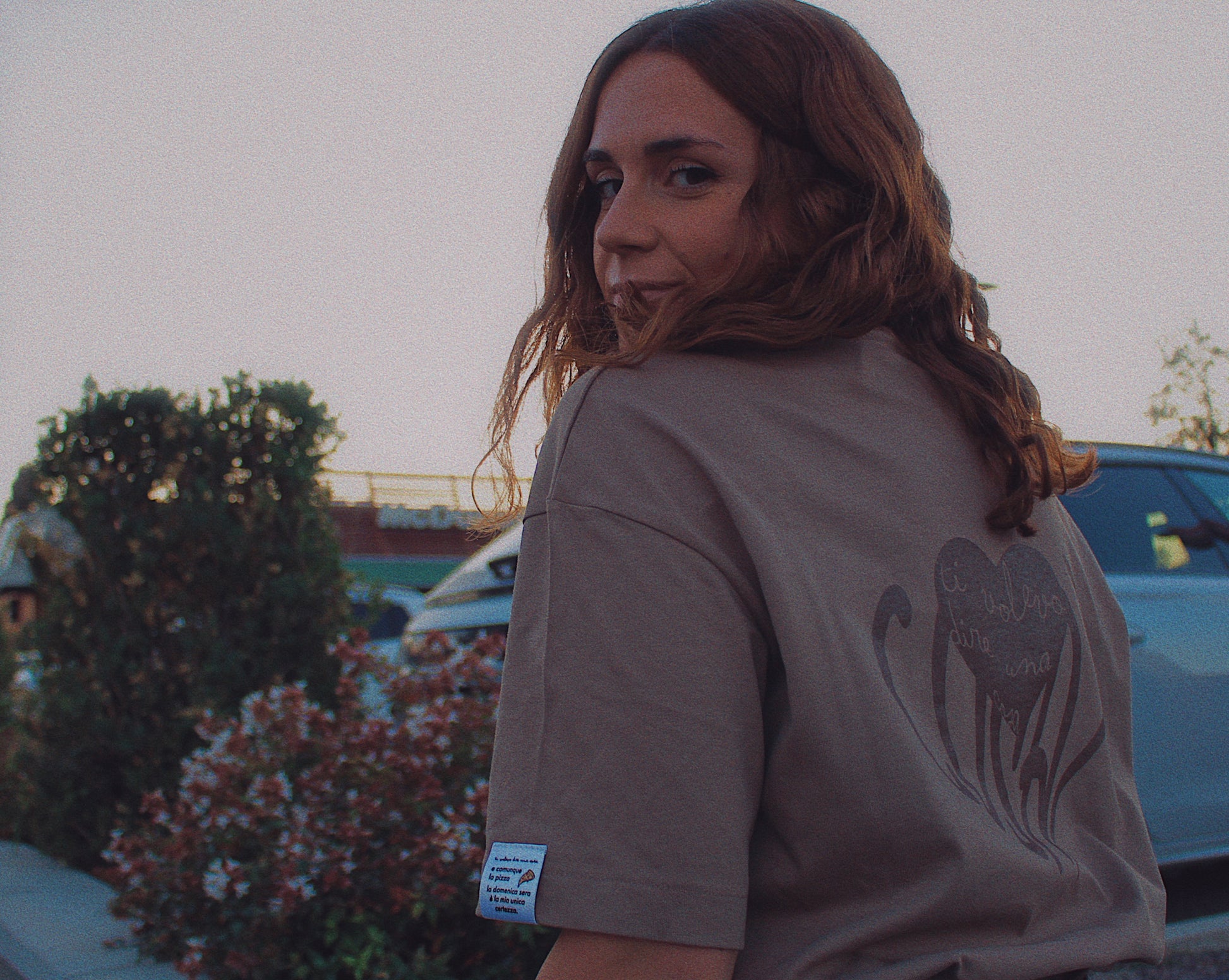 T-shirt 100% con etichetta personalizzata ricamata su manica sinistra, e stampa sul fronte.