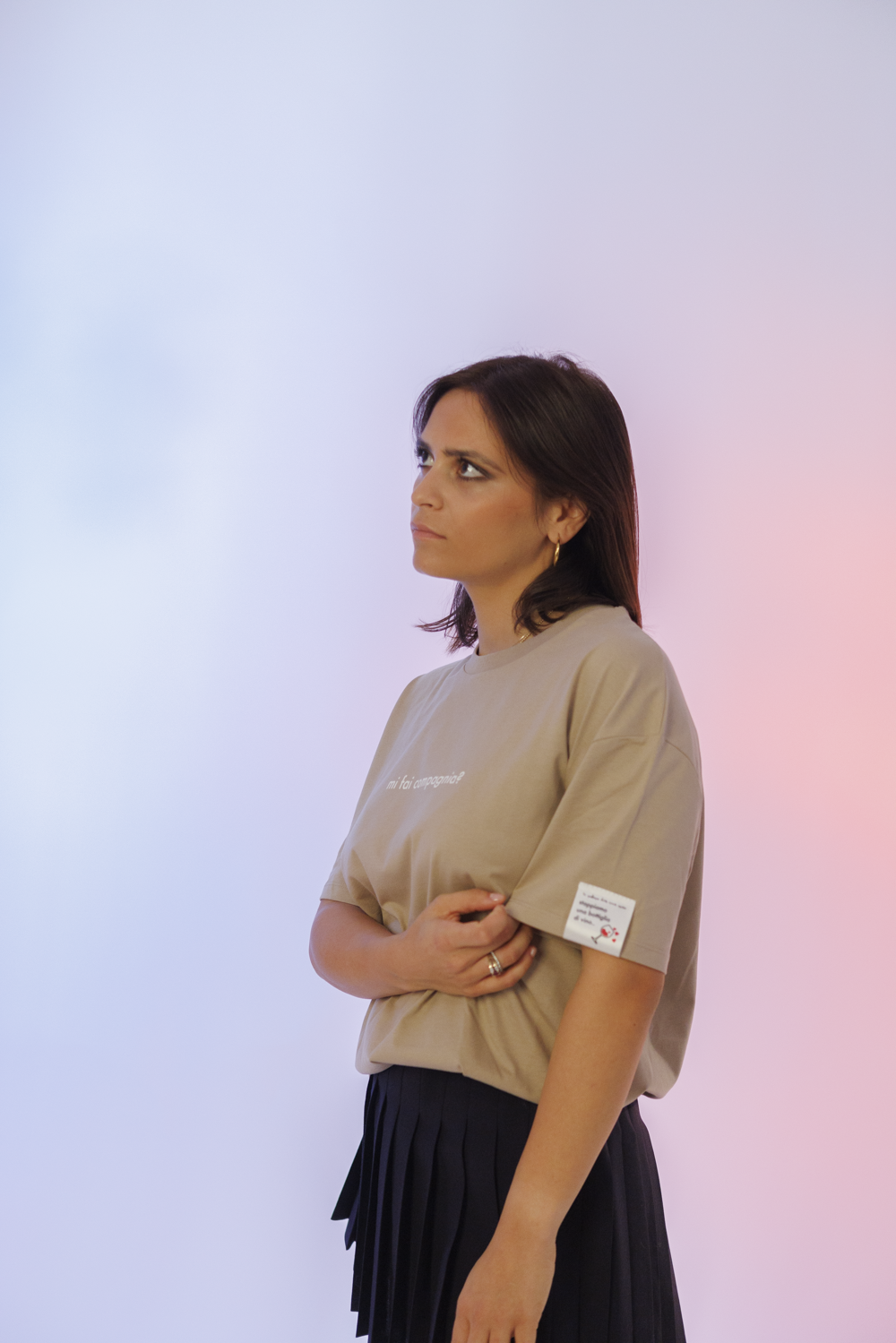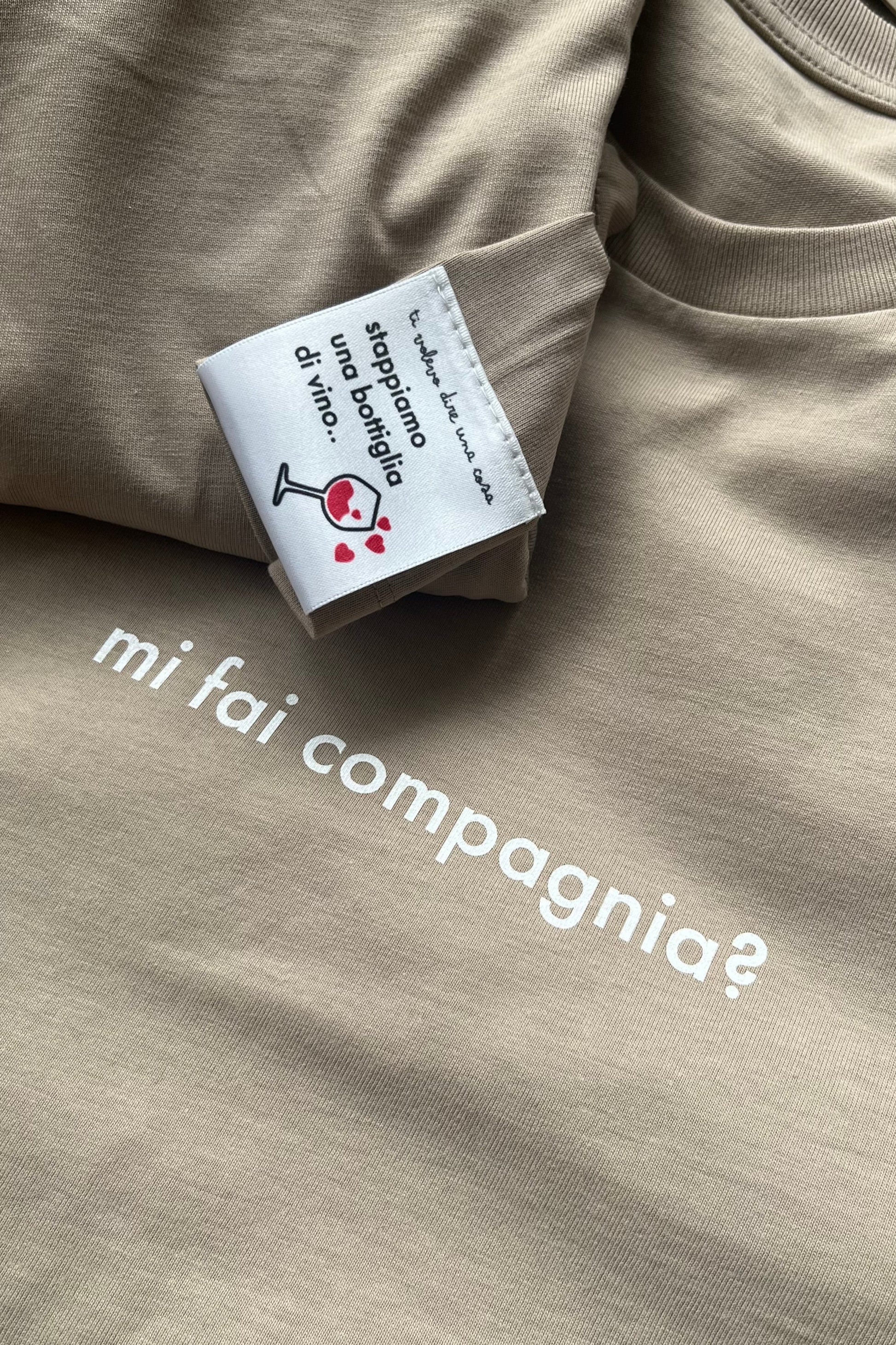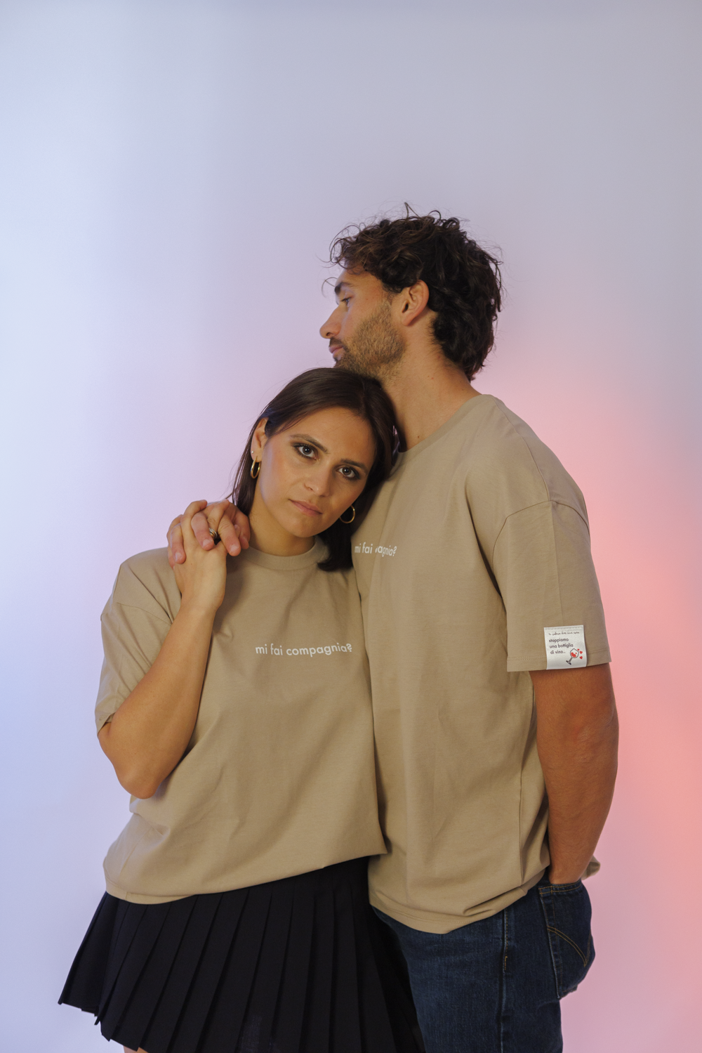 T-shirt 100% con etichetta personalizzata ricamata su manica sinistra, e stampa sul fronte.